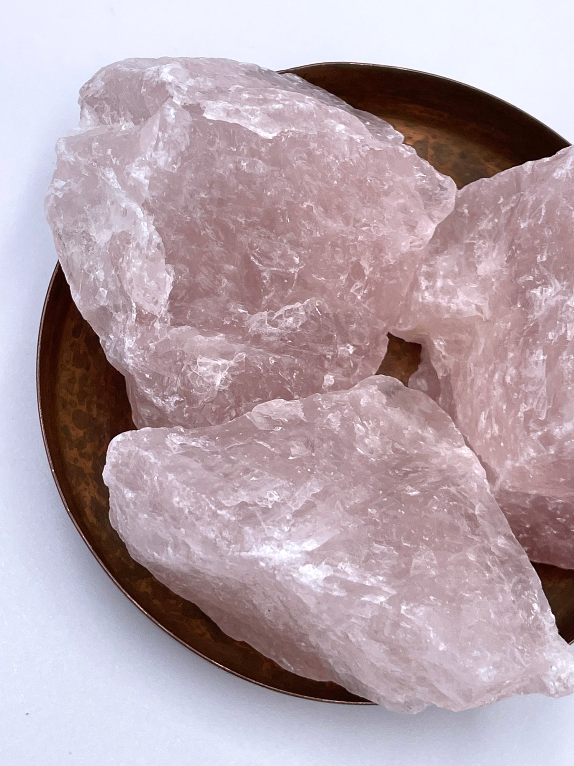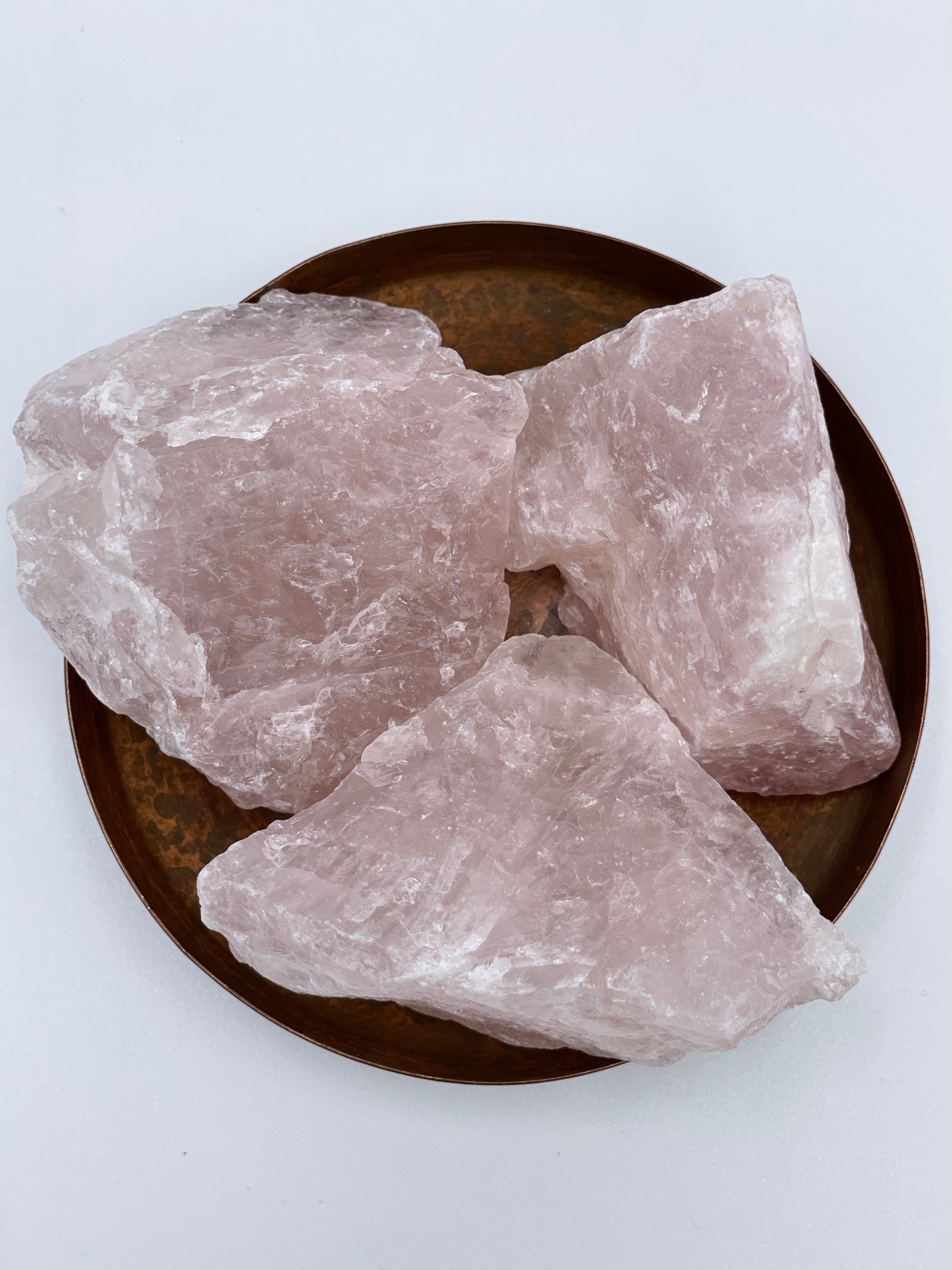 These Rough Rose Quartz crystals are all naturally formed and come in different sizes, shapes and shades of pink.
